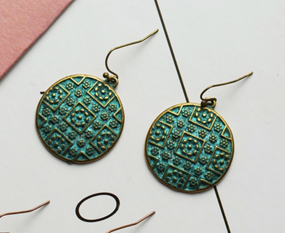 Antik bohém réz fülbevaló
